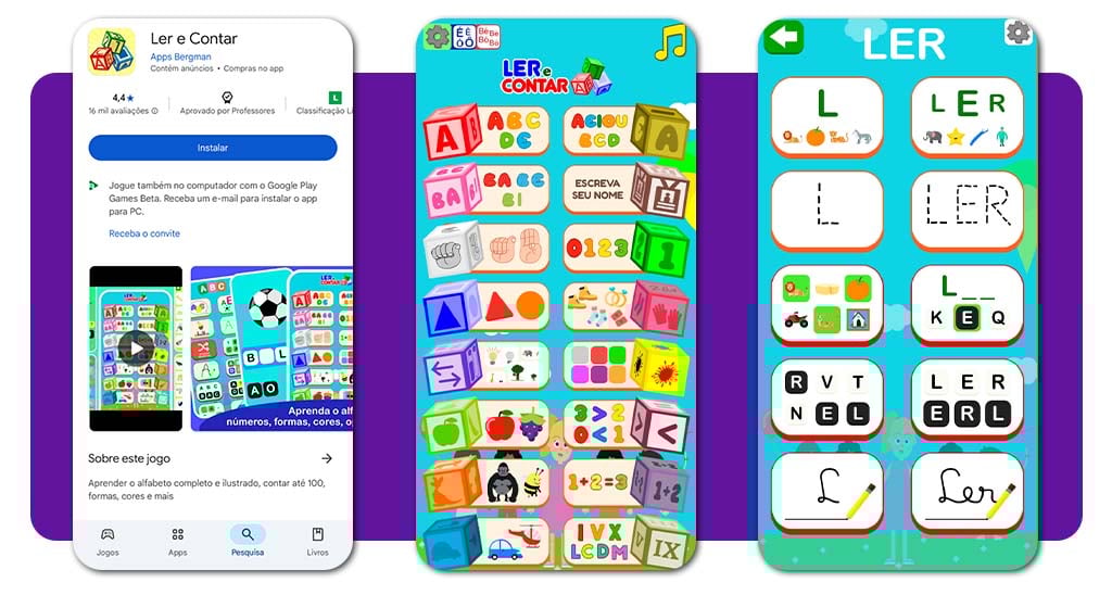 Além do Ler e Contar, existem outros apps que complementam o aprendizado:
